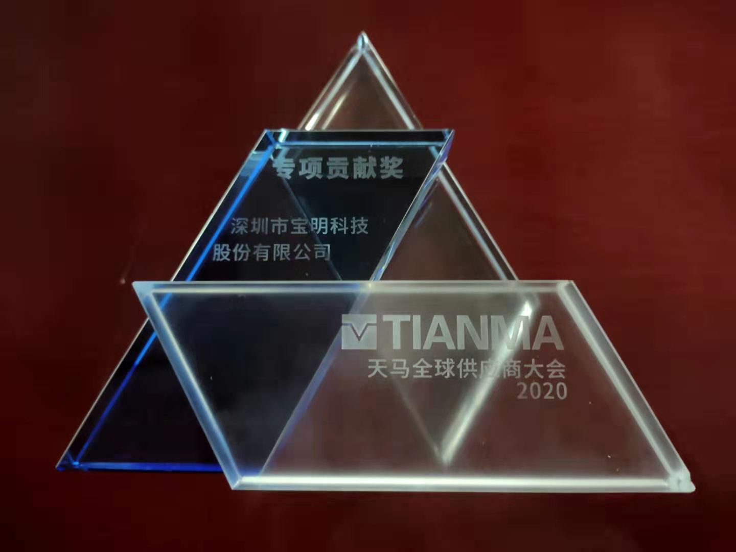 在2020年疫情影响下,以客户为导向,第一时间复工复产,同时在生产全自动化和信息化上加大投资,不断提升品质和效率,保障了客户的交付和品质,获得了天马的认可,并荣获天马“