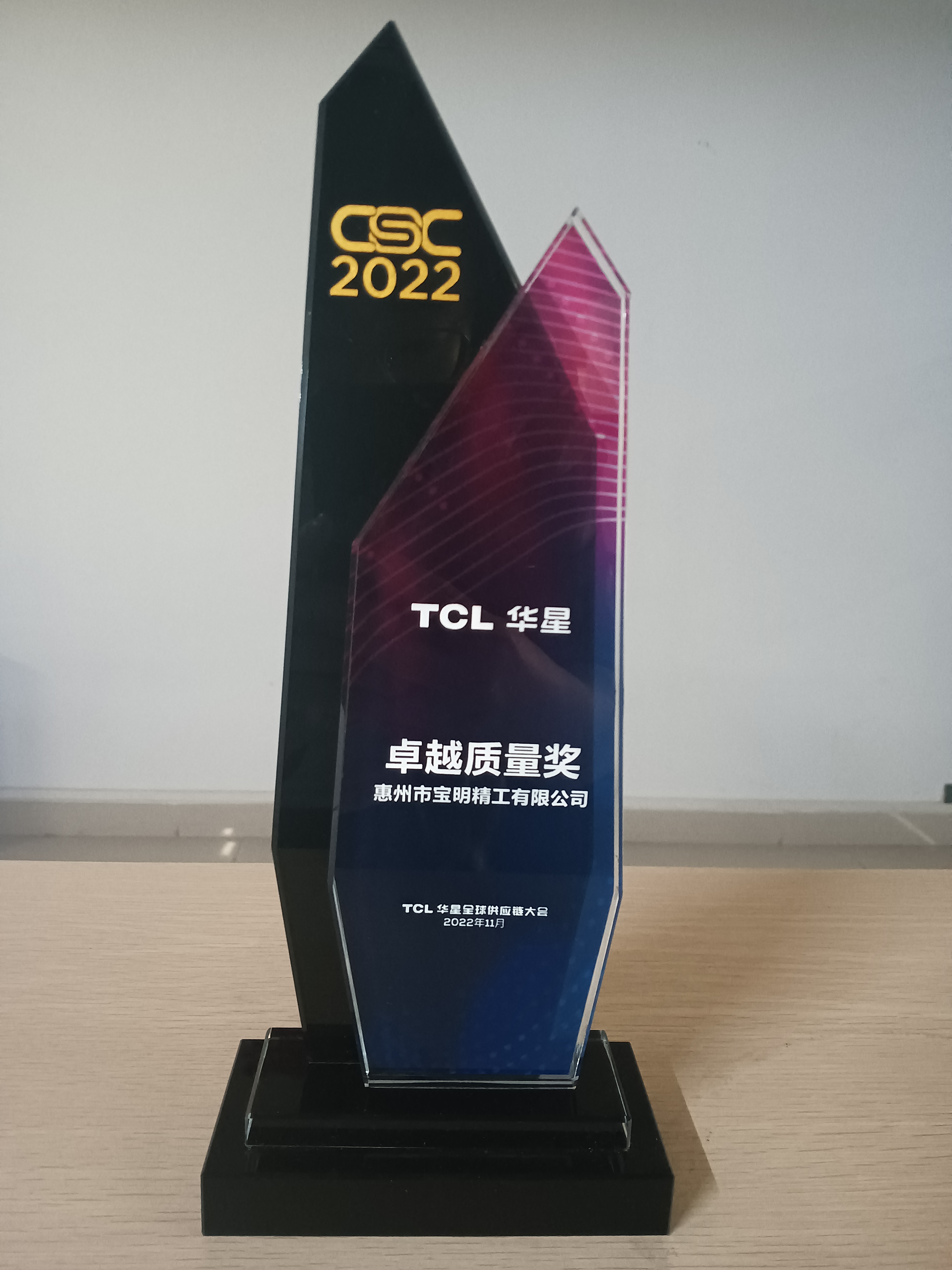 万搏wanbo(中国)官方精工荣获TCL华星“卓越质量奖”